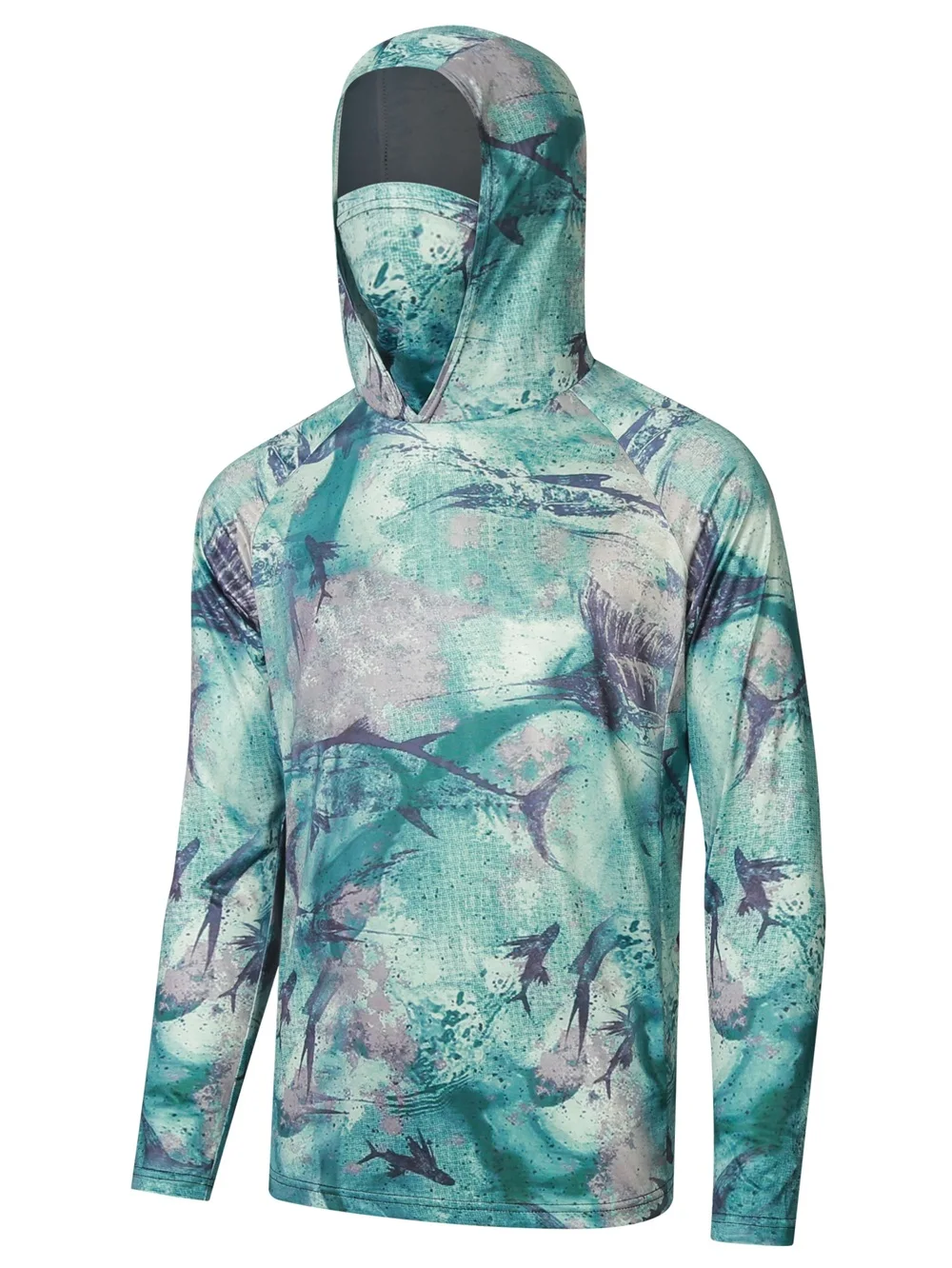 Stay protected and comfortable under the sun with this men’s lightweight UV sun protection hoodie. Perfect for fishing, hiking, and outdoor adventures, it features long sleeves and an integrated face mask to shield your skin from harmful UV rays. Breathable, quick-drying, and designed for active outdoor use, this hoodie keeps you cool and safe while enjoying your favorite activities. Ideal for anglers, hikers, and sun-conscious adventurers.