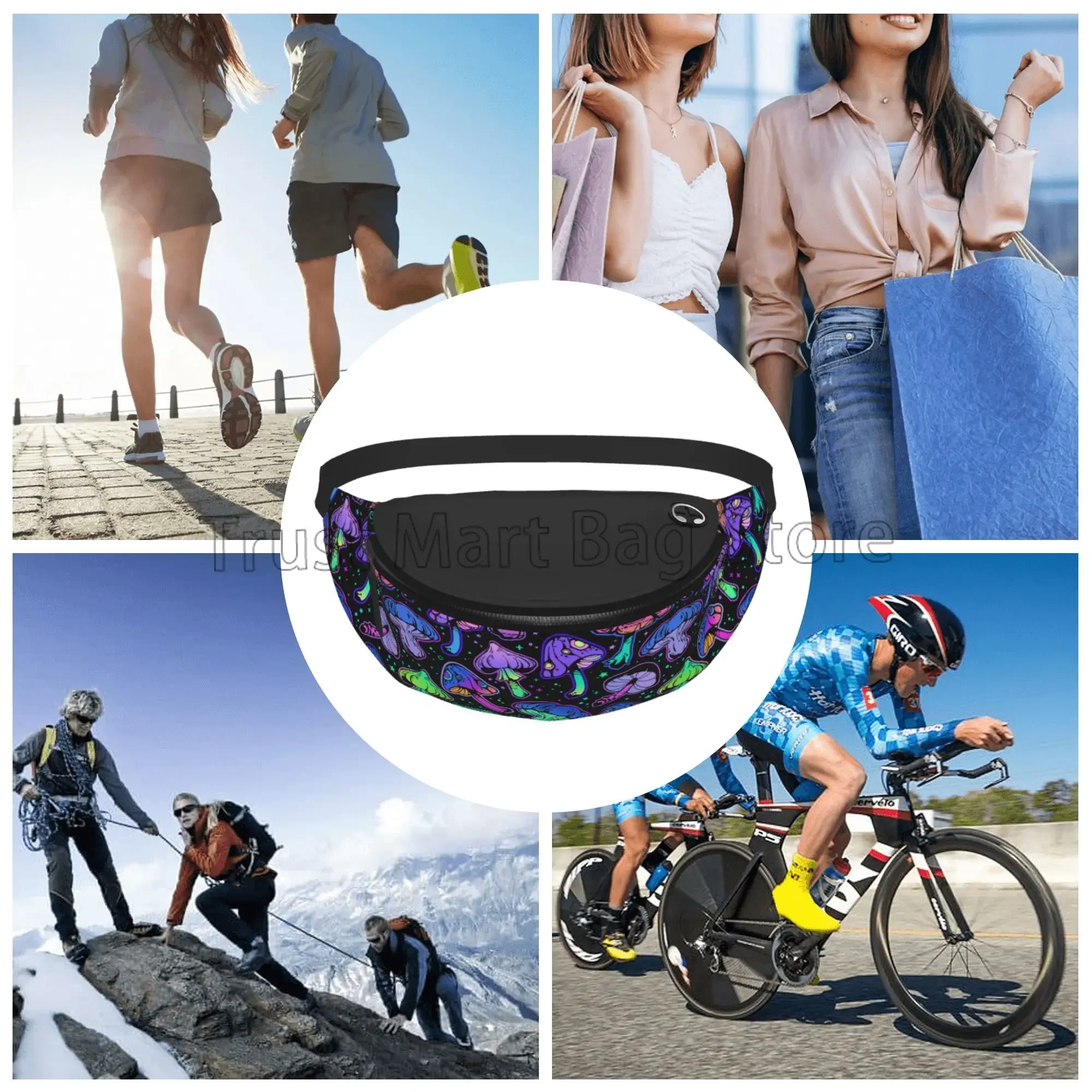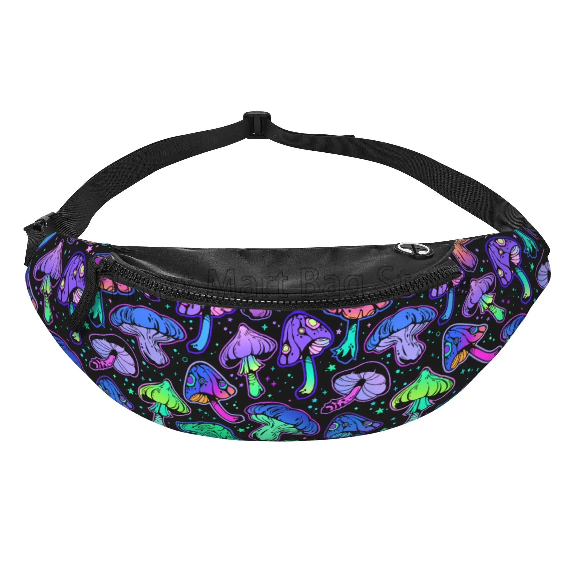 Carry your essentials in psychedelic style with this Psychedelic Mushrooms Fanny Pack, designed for ravers, travelers, and outdoor adventurers. The vibrant trippy mushroom print brings pure psytrance festival energy, while the adjustable belt ensures a secure and comfortable fit for dancing, hiking, running, or cycling. Lightweight, durable, and roomy enough for your phone, wallet, and accessories—this waist pack is the perfect blend of convenience and rave aesthetic. Ideal for EDM festivals, camping trips, daily wear, and nighttime adventures.