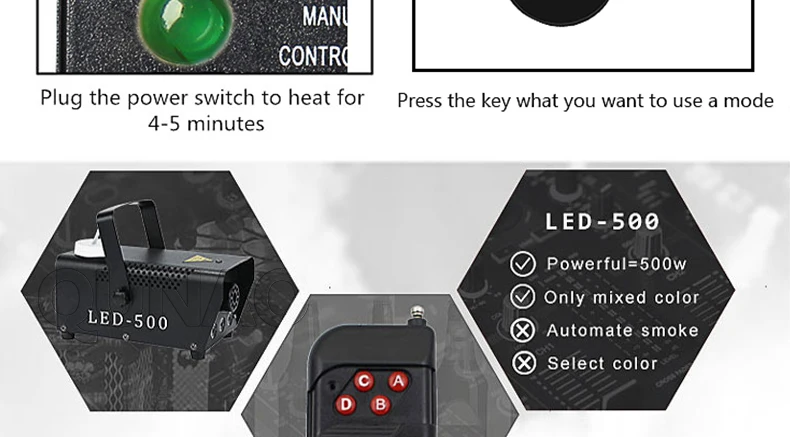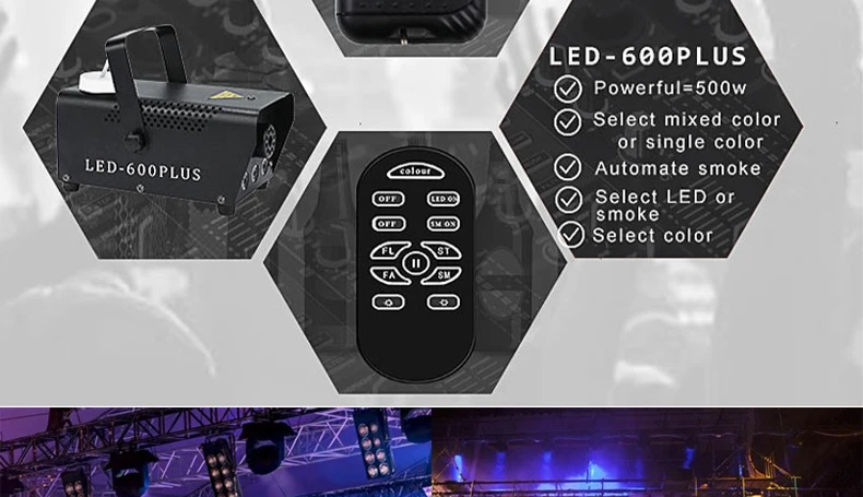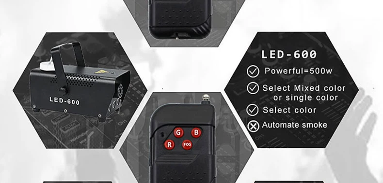 2.LED-600 can select color on the remote ,can work Single red color with smoke,single green color with smoke,single blue color with smoke,and RGB mixed work together,so pls check which mode you need,the LED-600 is the LED-500 upgrade mode