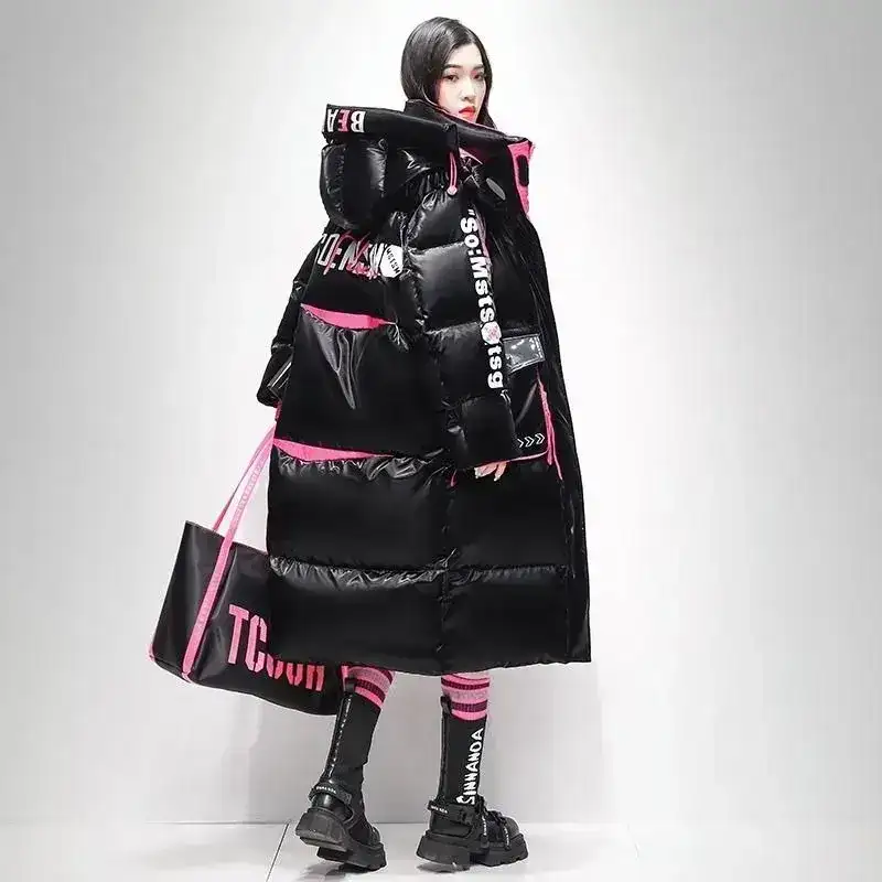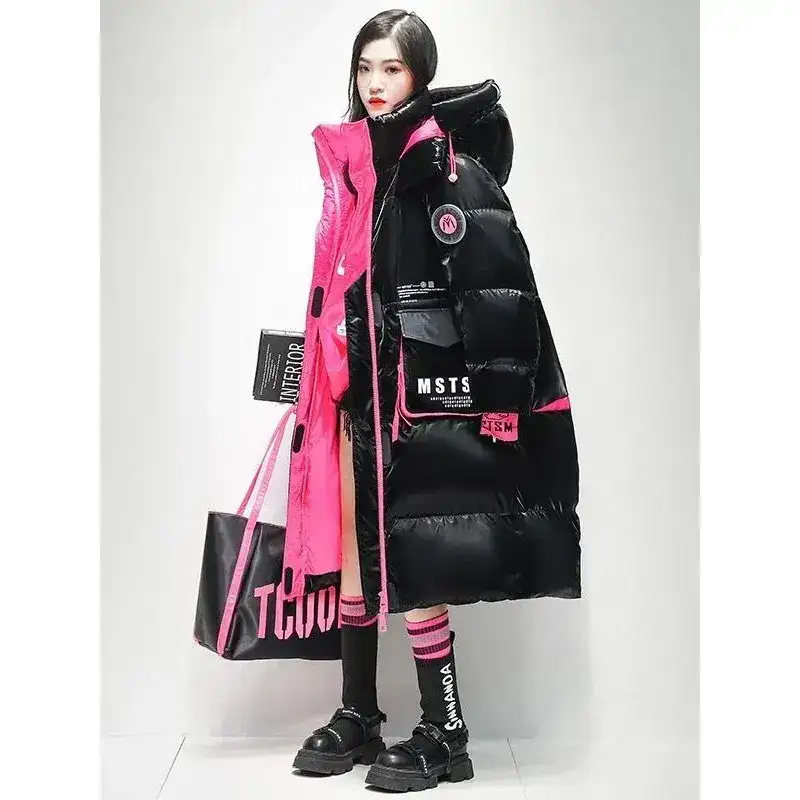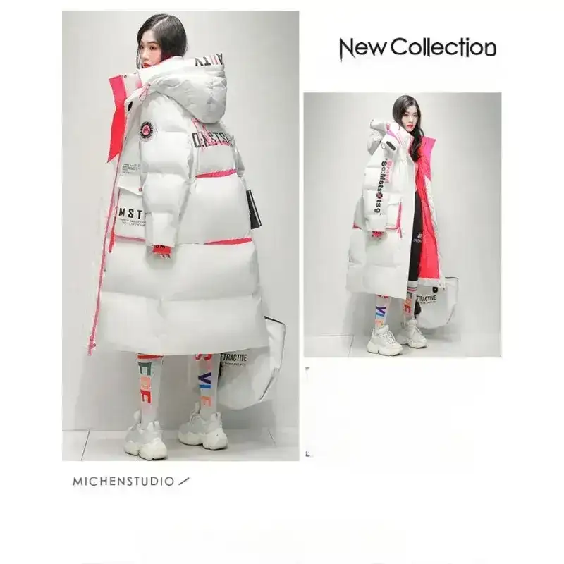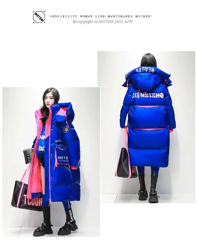 Step into winter with dramatic style and unbeatable warmth. This over-knee long shiny down jacket brings a futuristic, high-fashion atmosphere to cold-season outfits. With a bright, glossy finish and thick “bread suit” puffer build, it delivers both standout looks and deep insulation — perfect for winter festivals, street style, and anyone who loves bold silhouettes.