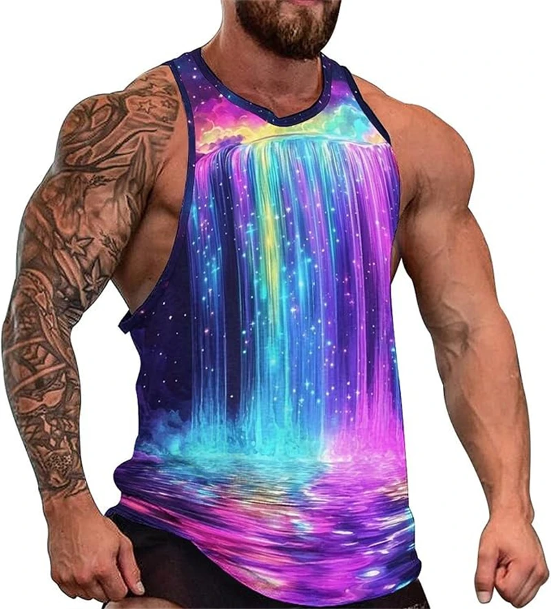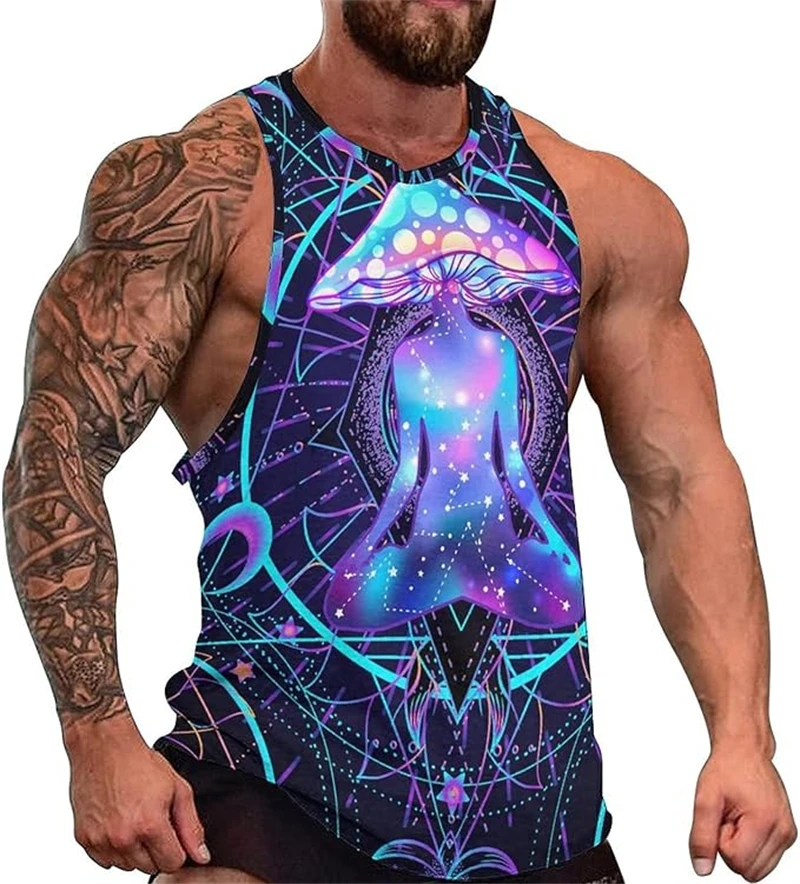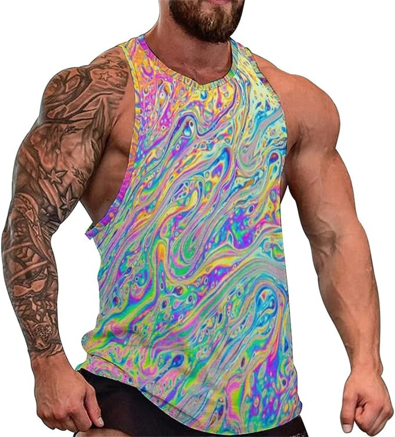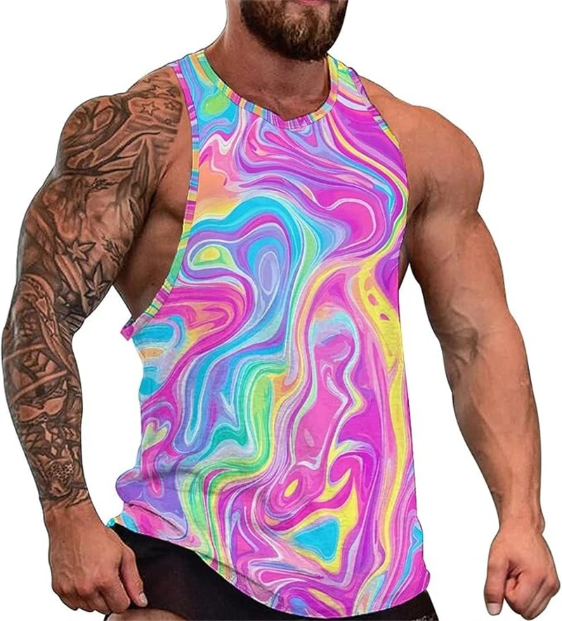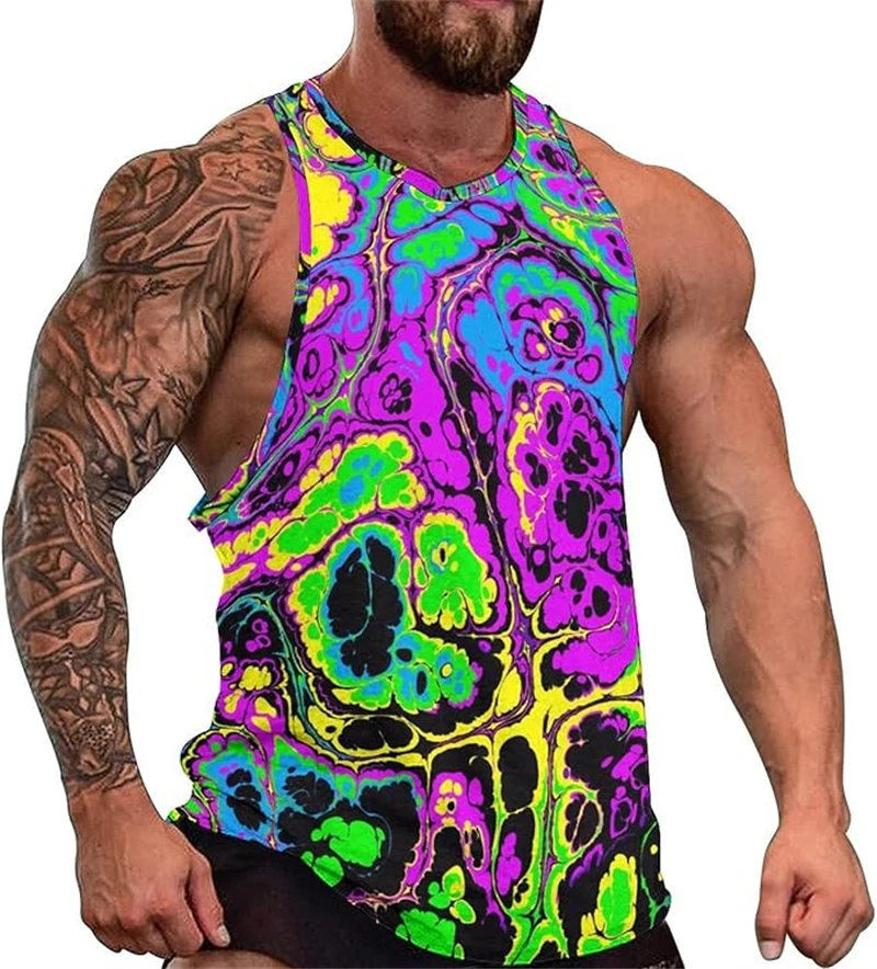 Turn up the heat this summer with this Psychedelic Pattern 3D Print Tank Top, designed for men who live in color, movement, and festival energy. The vibrant artwork blends futuristic Y2K style with trippy psychedelic graphics, creating a bold sleeveless vest perfect for raves, outdoor parties, gym sessions, and hot summer days.