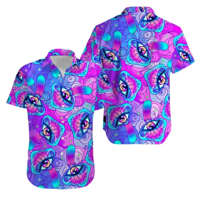 The loose, breezy fit keeps you comfortable under the summer sun—perfect for beach parties, psytrance festivals, outdoor gatherings, and tropical vacations. The classic lapel collar adds a retro touch, while the bold print ensures you stand out from the crowd.