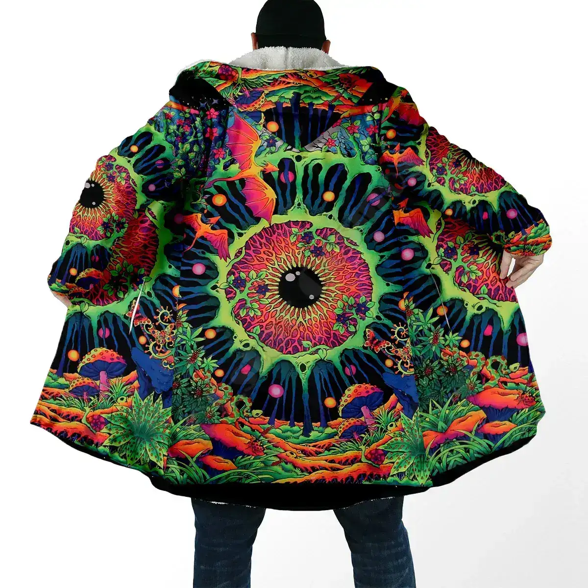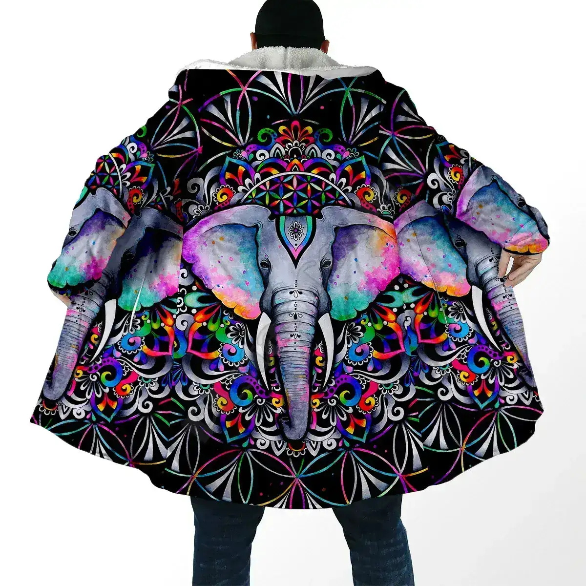 Stay warm, expressive, and full of psychedelic energy with this Psychedelic Elephant 3D Printed Hooded Cloak — a bold unisex winter overcoat designed for festival lovers, ravers, and anyone who embraces cosmic style. Featuring a vibrant, all-over 3D print of a mystical elephant, this cloak blends spiritual symbolism with futuristic color tones, perfect for winter events and outdoor adventures.