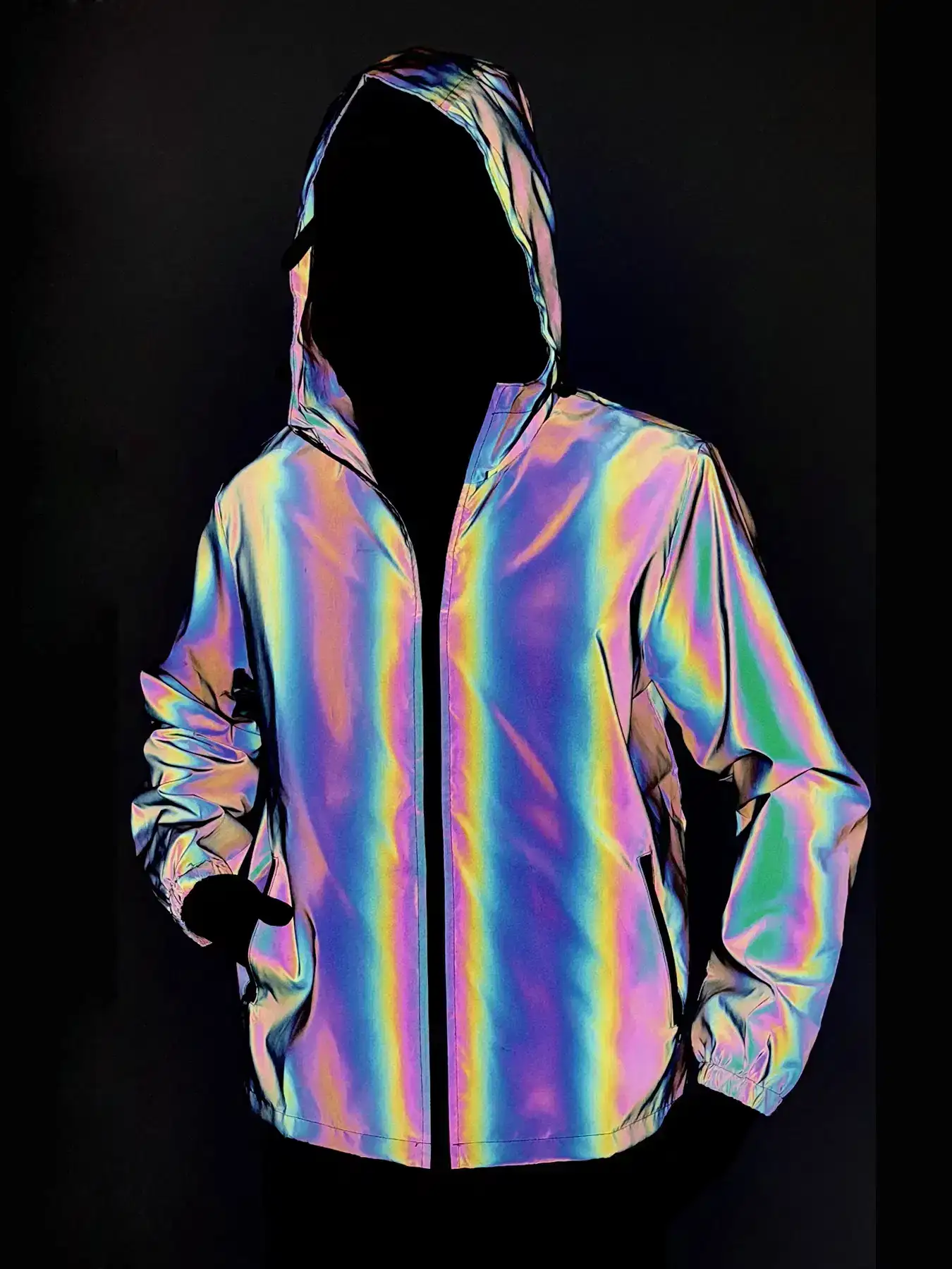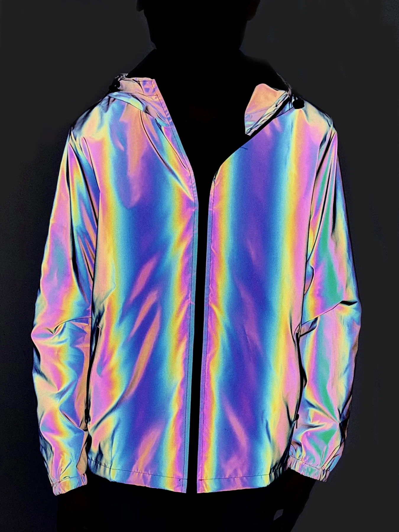 Light up the night and stay stylish in any crowd with this Colorful Reflective Festival Jacket. Made for spring or autumn sets, street parties and riding around town, it’s a bold windbreaker that shifts from daytime streetwear to eye‑catching glow under lights. The shimmering, rainbow‑like surface instantly turns ordinary outfits into festival‑ready looks — perfect for hip‑hop, rave, or urban nightlife.