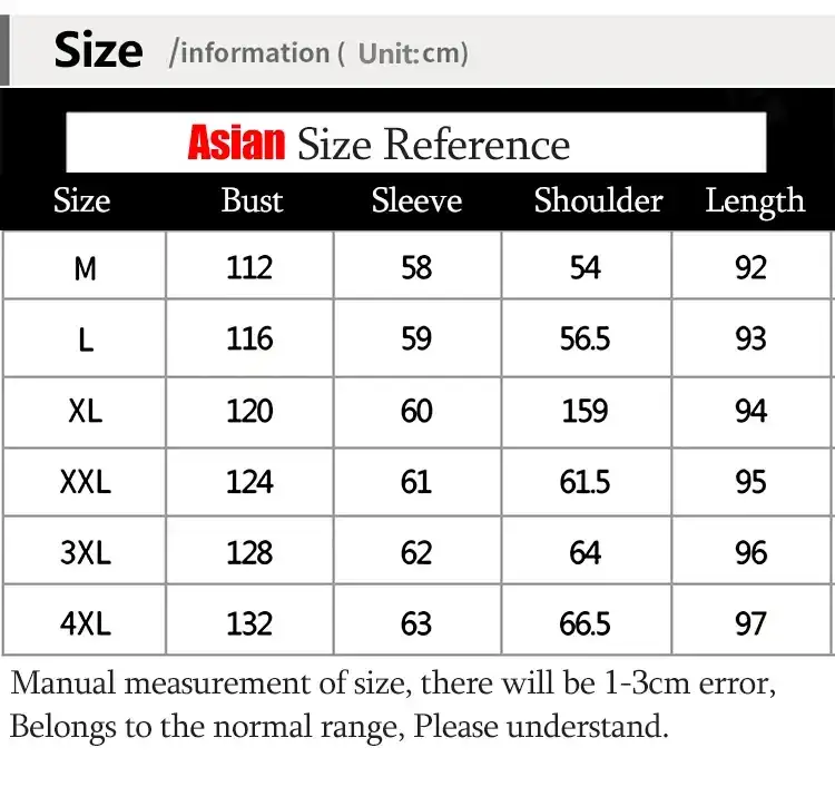 1. This is Chinese Size, about 1-2 size smaller than EU/US size. If you wear EU/US size L, you can select our size XL or XXL. If you have any confuse, please contact the store Manager.