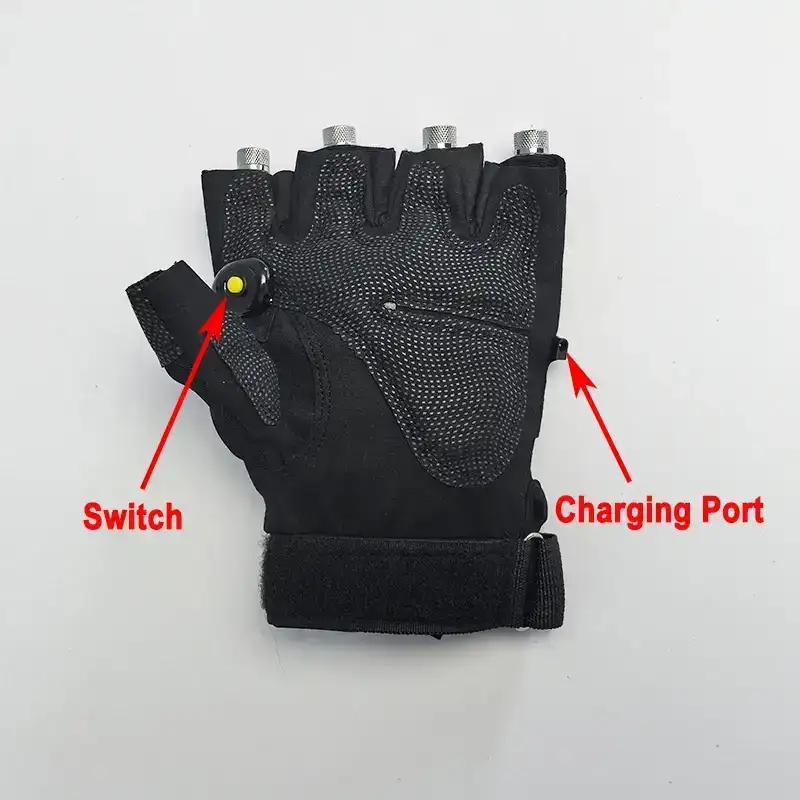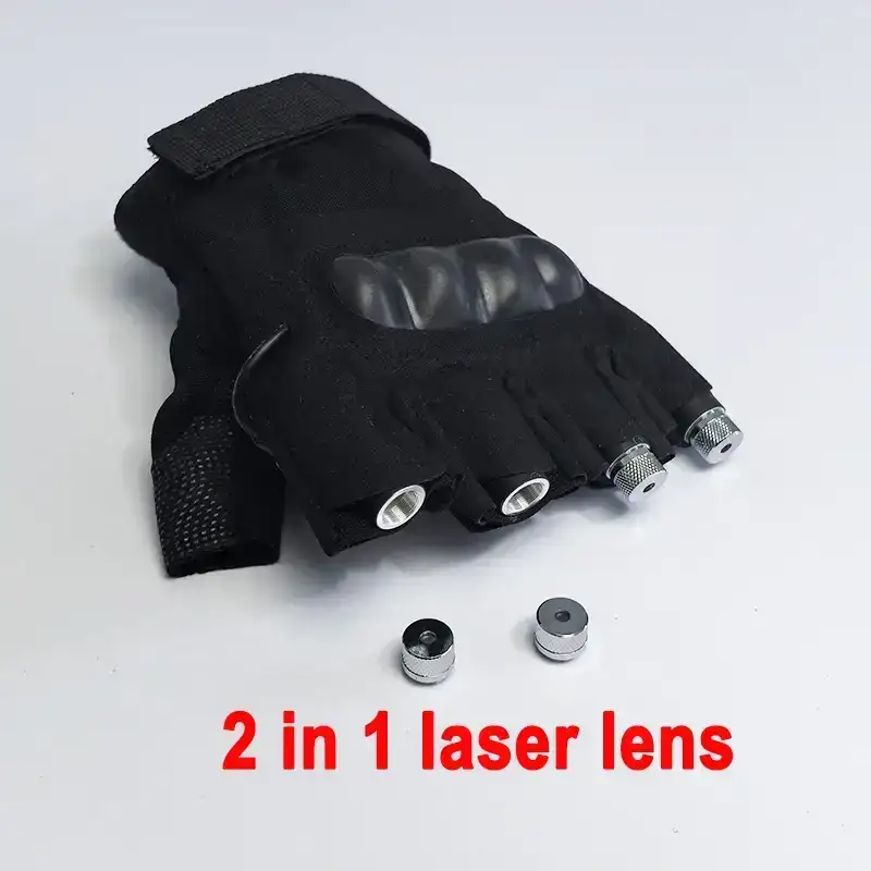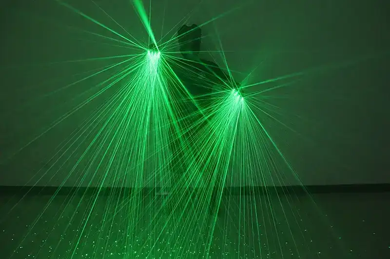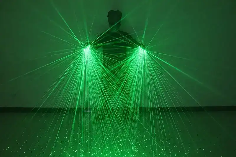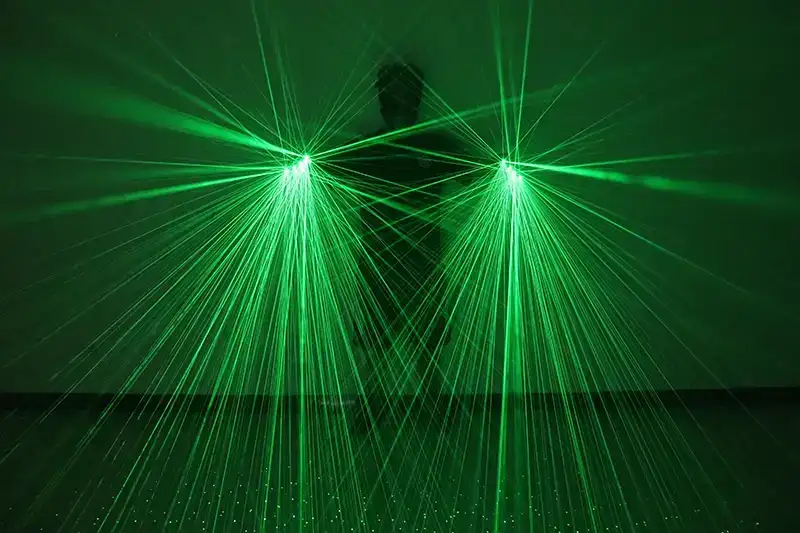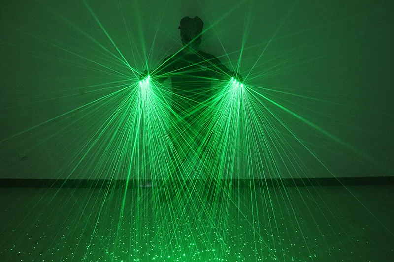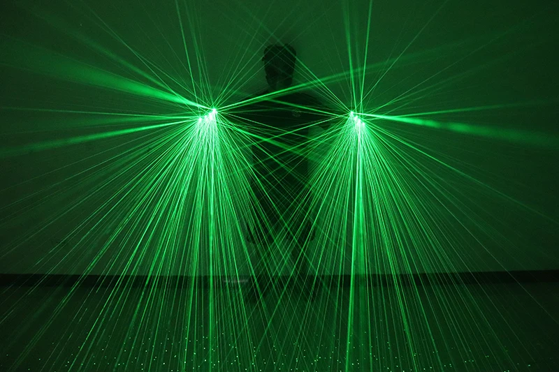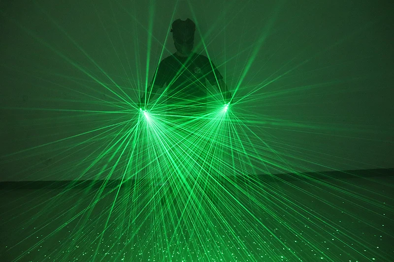 Powerful 532nm green laser gloves with four intense beams per hand. Professional LED palm-light mittens for DJs, stage performances, psytrance parties, disco shows, weddings and nightclub events. Create stunning laser vortex effects that cut through the night and own every dancefloor.