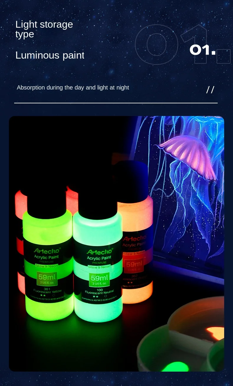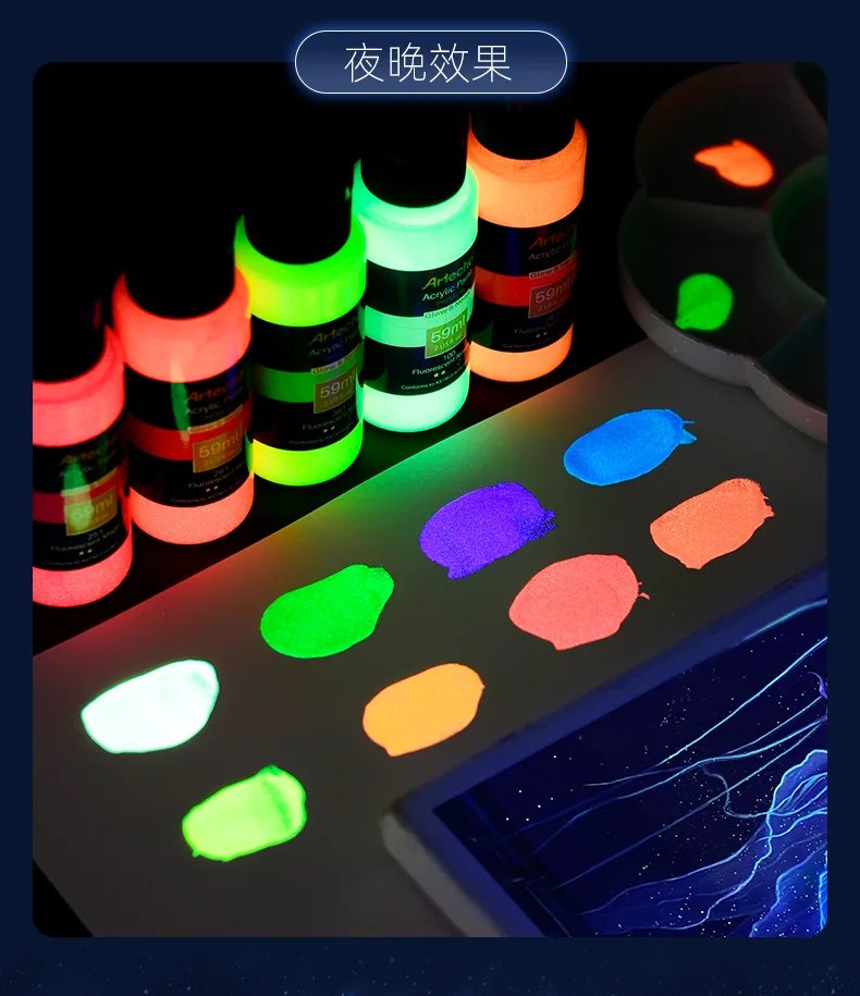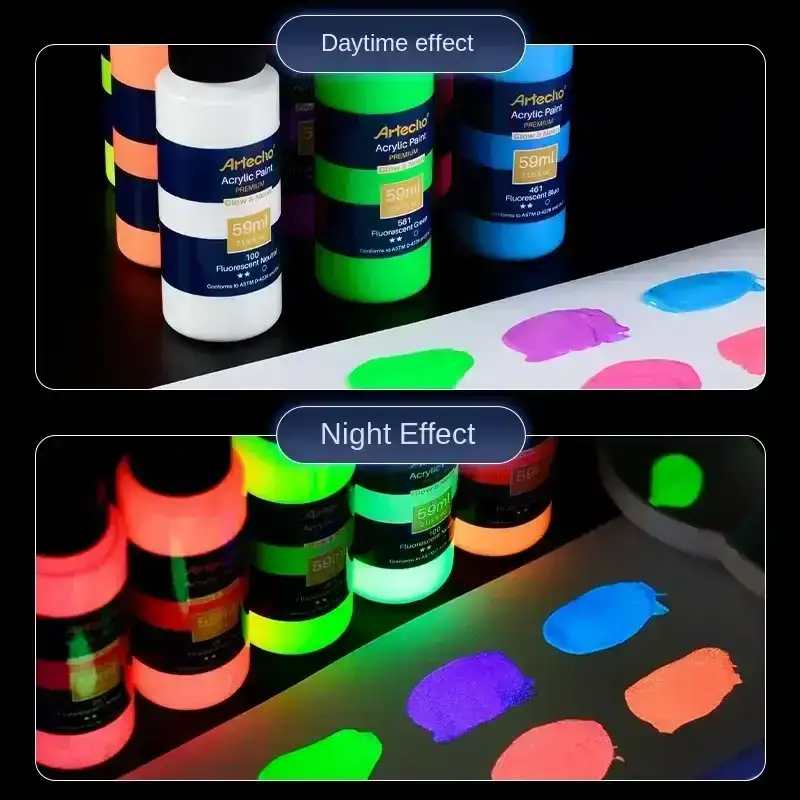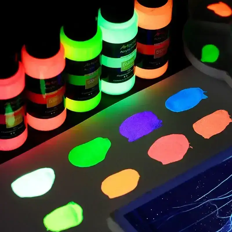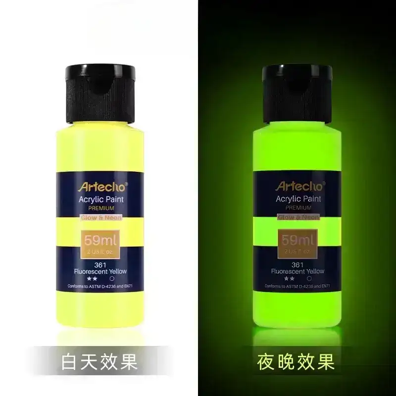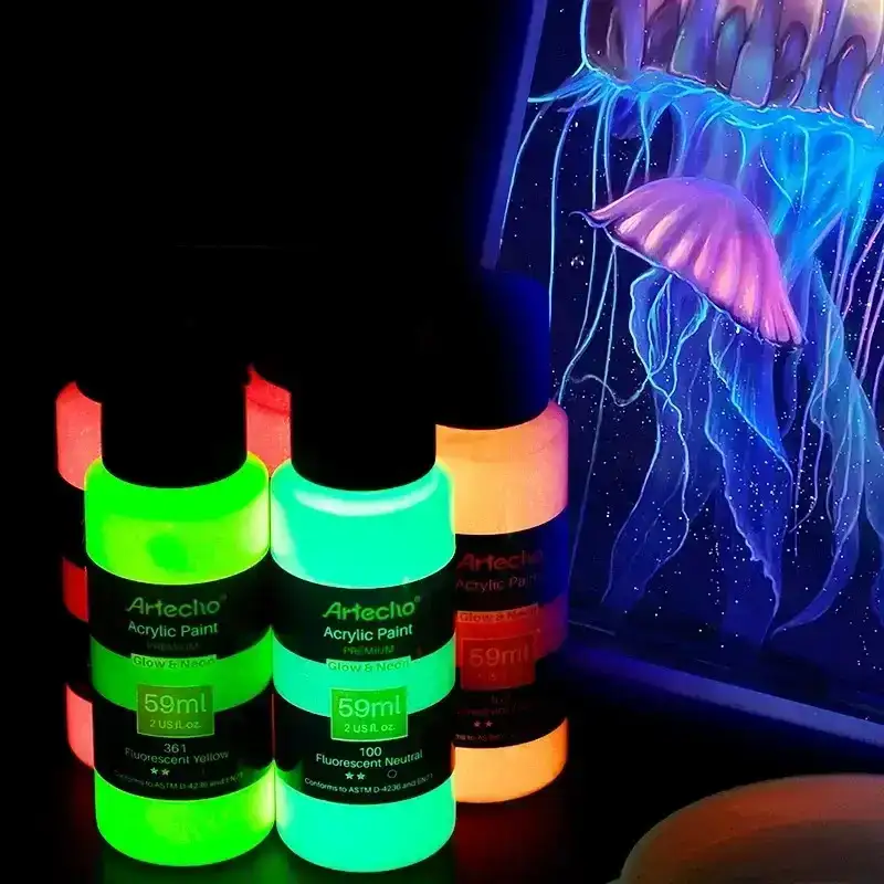 Create glowing psychedelic designs with this 59ml luminous fluorescent acrylic paint, perfect for hand-painted DIY projects on clothes, shoes, textiles, glass, and more. Its vivid UV-reactive formula shines brightly under blacklight, making it ideal for psytrance festivals, rave outfits, stage props, and creative neon artwork. Smooth, easy to use, and brilliantly vibrant—your go-to glowing paint for festival-ready custom creations.