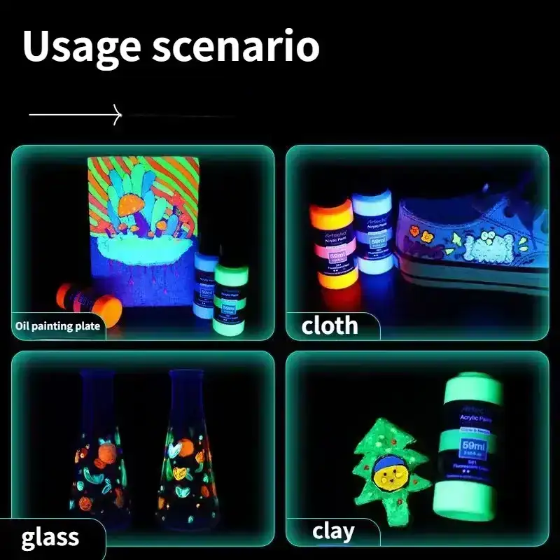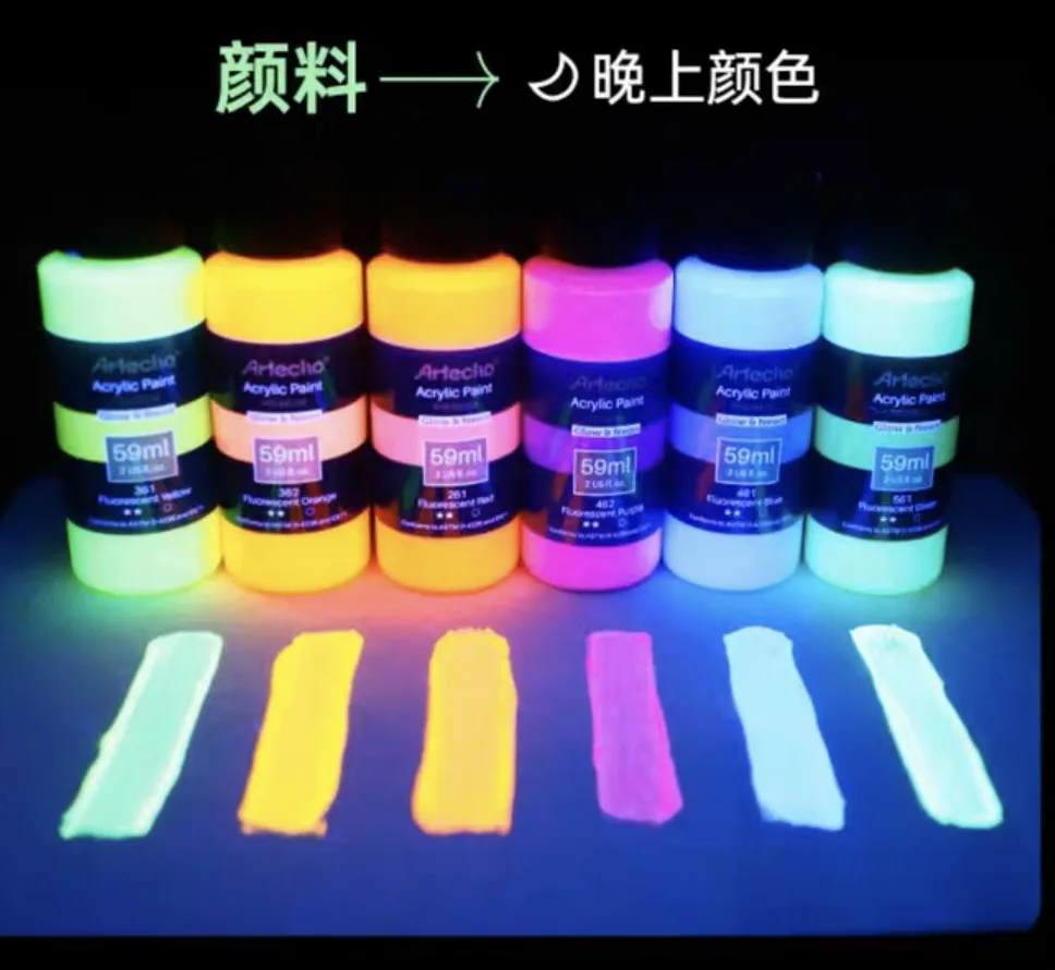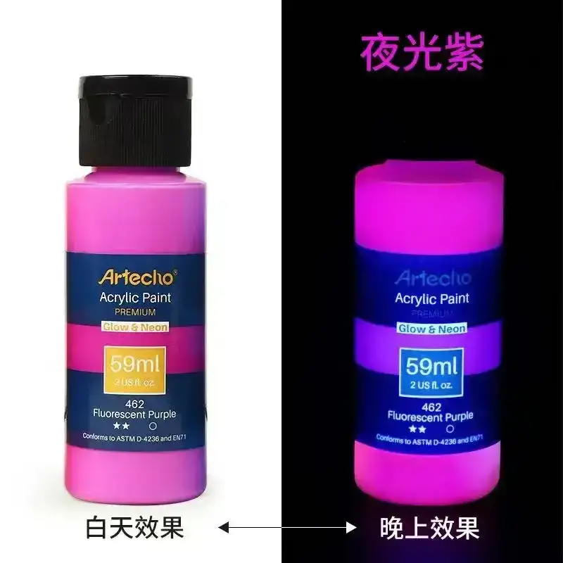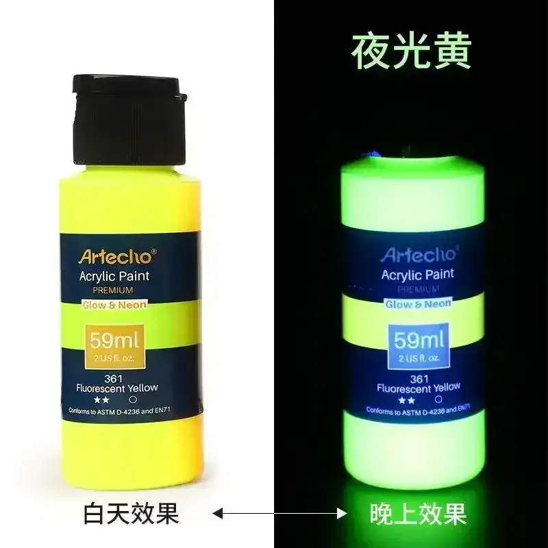 Create glowing psychedelic artwork with this high-brightness Fluorescent Acrylic Paint, designed to absorb light and shine intensely in the dark. The 58ml luminous formula is perfect for students, DIY creators, textile painting, wall murals, rave outfits, and festival décor. Smooth, vibrant, and UV-reactive—an essential glow pigment for crafting bold psytrance visuals and neon creative projects.