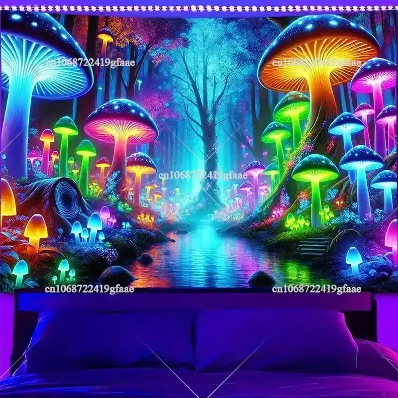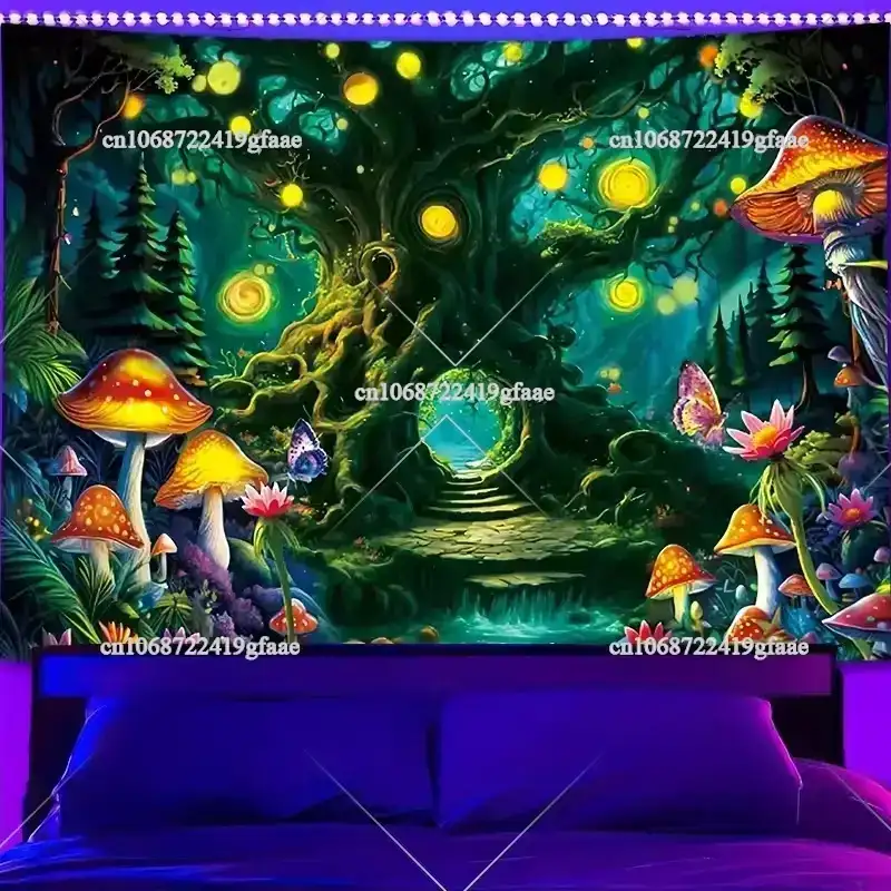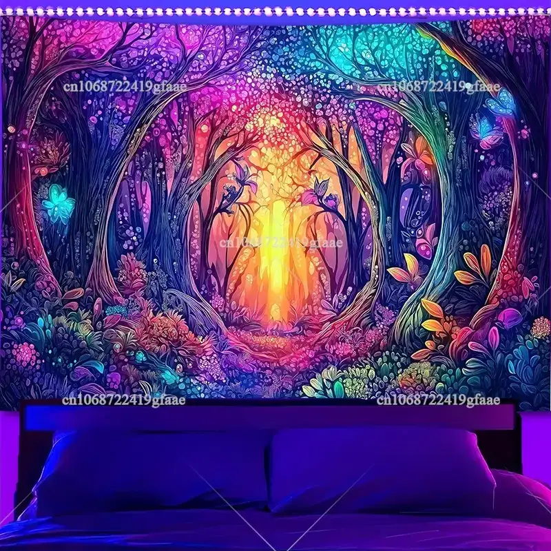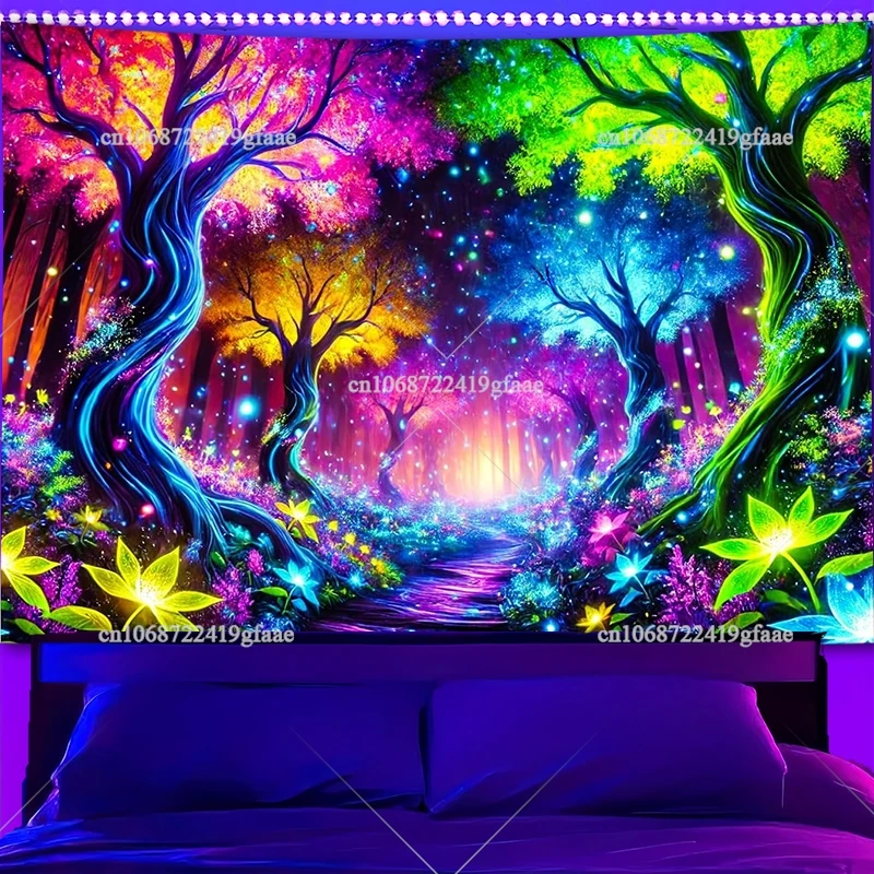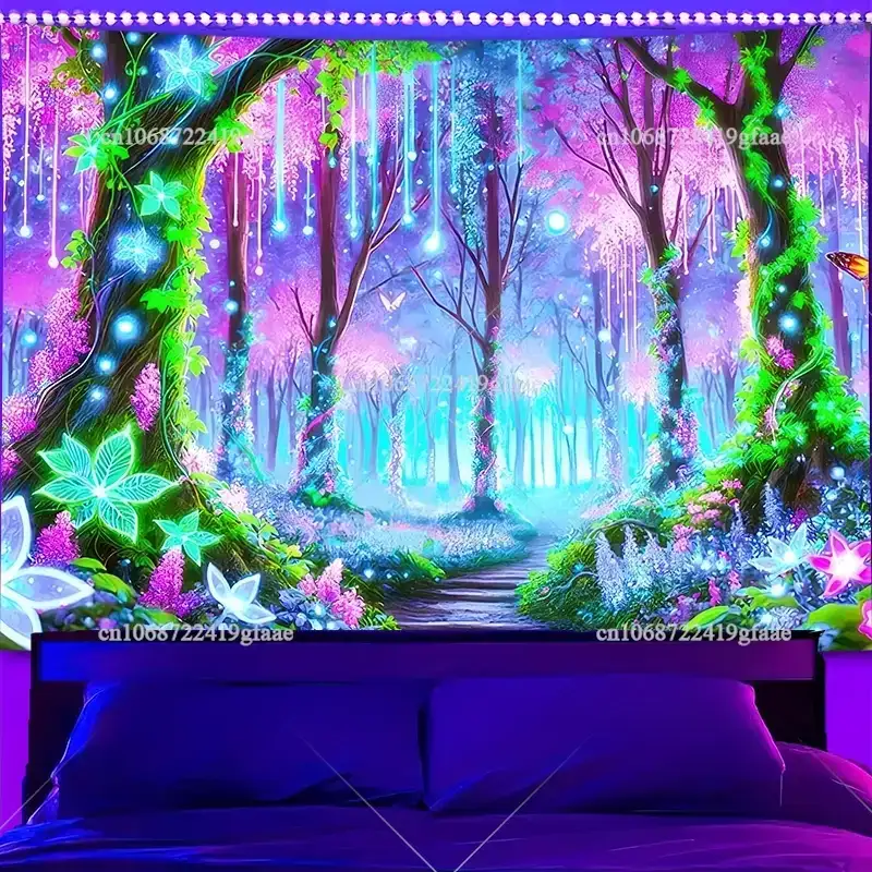 Whether you’re decorating for a neon party, elevating your bedroom vibe, or setting up a trippy meditation corner, this tapestry delivers immersive visual energy. The UV-reactive pigments shine intensely under blacklight, turning any space into a vibrant, enchanted forest.