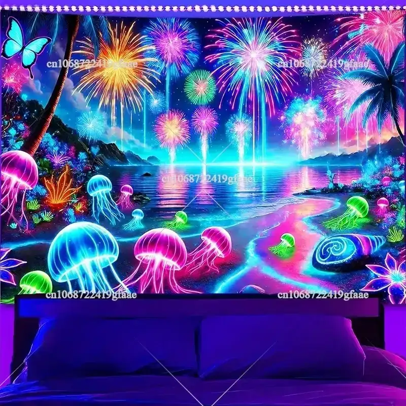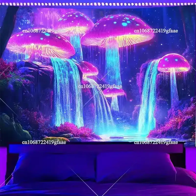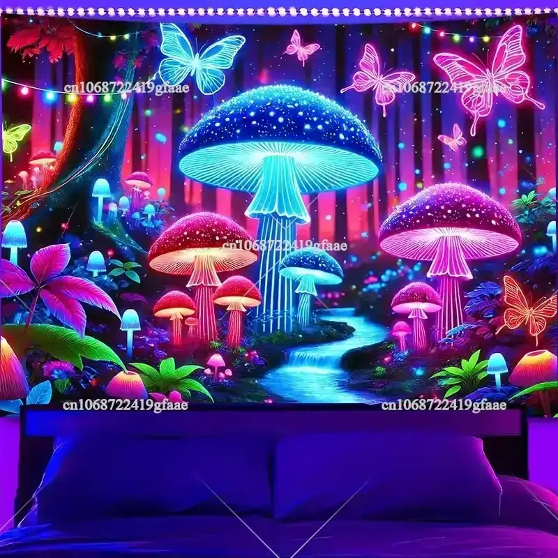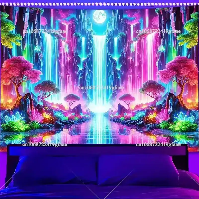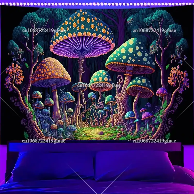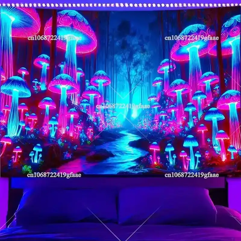 Whether you’re decorating for a neon party, elevating your bedroom vibe, or setting up a trippy meditation corner, this tapestry delivers immersive visual energy. The UV-reactive pigments shine intensely under blacklight, turning any space into a vibrant, enchanted forest.