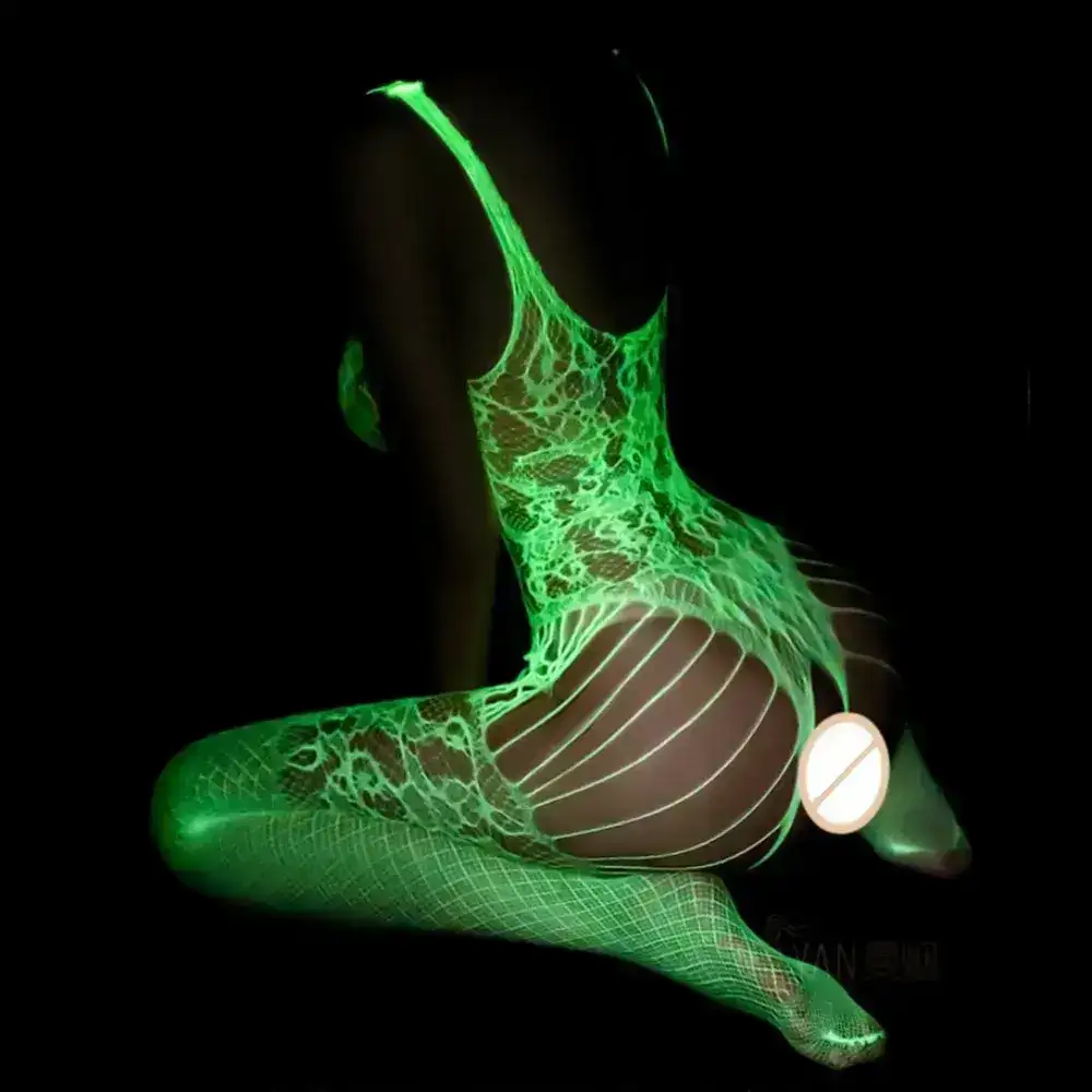 Its lightweight, stretchy mesh allows full freedom of movement — ideal for all-night dancing at psytrance, techno, or neon UV parties. Under blacklight, the luminous fabric reacts with a radiant glow, making every curve and movement visually magnetic.