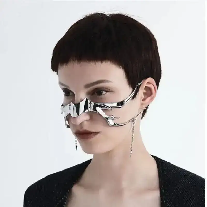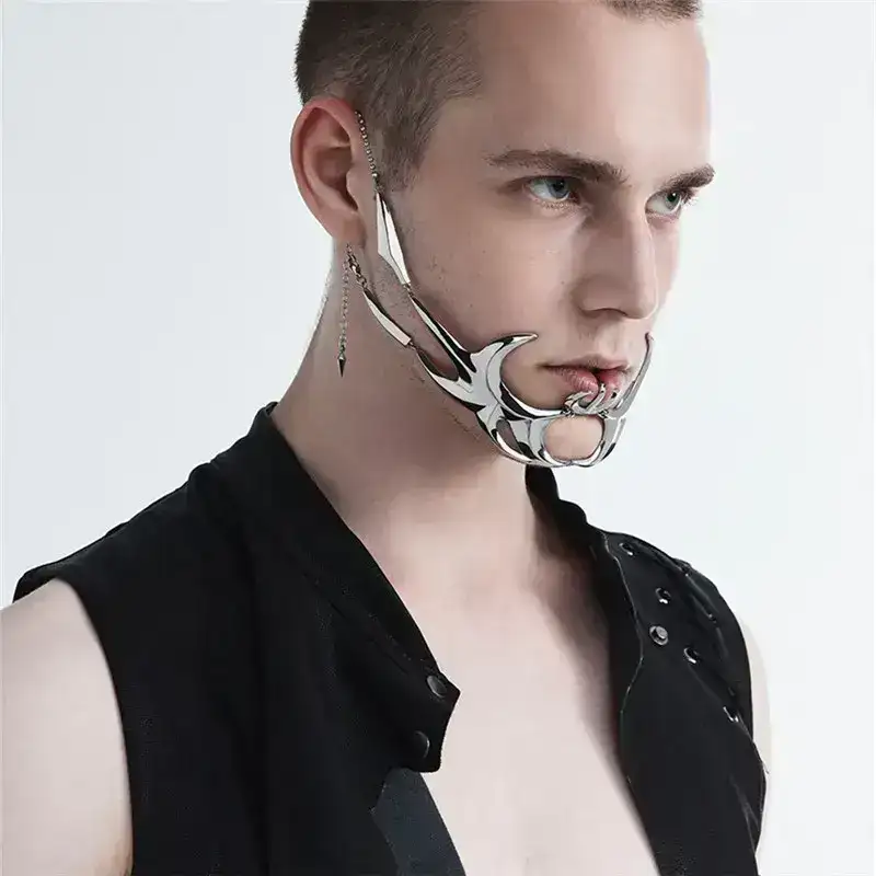 Make a bold statement with this 2023 punk-style mask crafted from irregular hollow titanium steel in a striking silver finish. Designed as a unique facial accessory for both men and women, it adds an edgy, futuristic touch to party outfits, festivals, photoshoots, cosplay, and alternative fashion looks. Durable, artistic, and unmistakably cool—perfect for those who love standout punk jewelry.