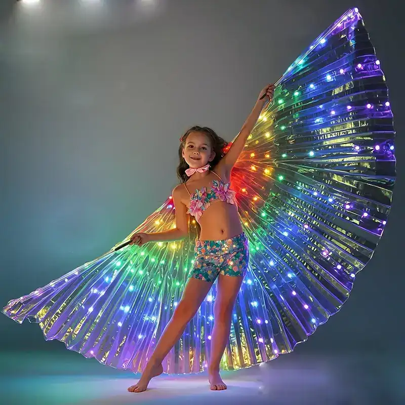 Let your child shine with these beautiful LED Butterfly Wings, featuring vibrant luminous lights that create a magical fairy look. Perfect for kids’ parties, dance performances, festival parades, Halloween, cosplay, and stage shows, these glowing wings add enchanting movement and radiant color in the dark. Lightweight, comfortable, and visually stunning—an unforgettable costume that brings fantasy to life.
