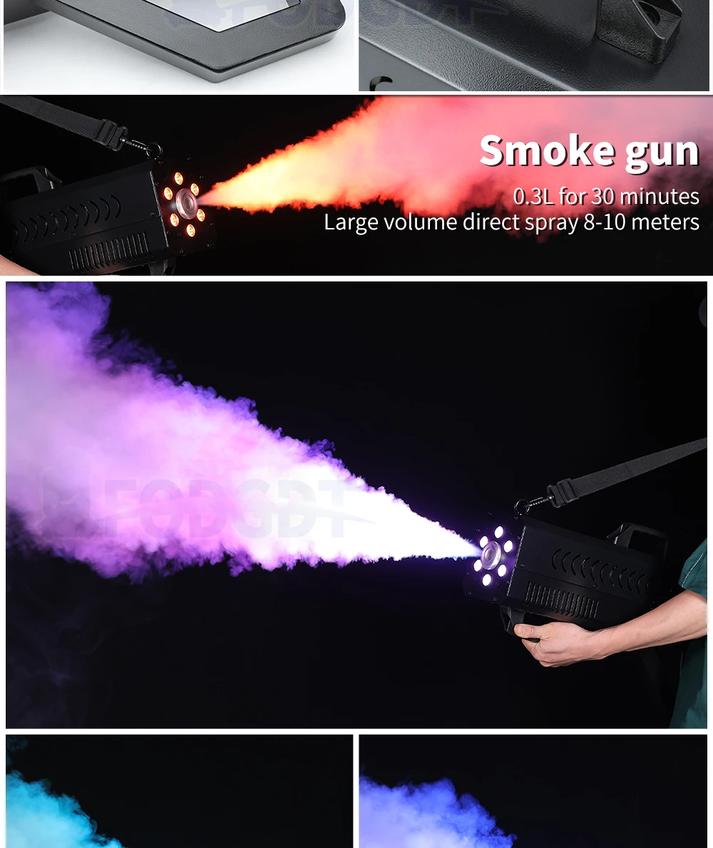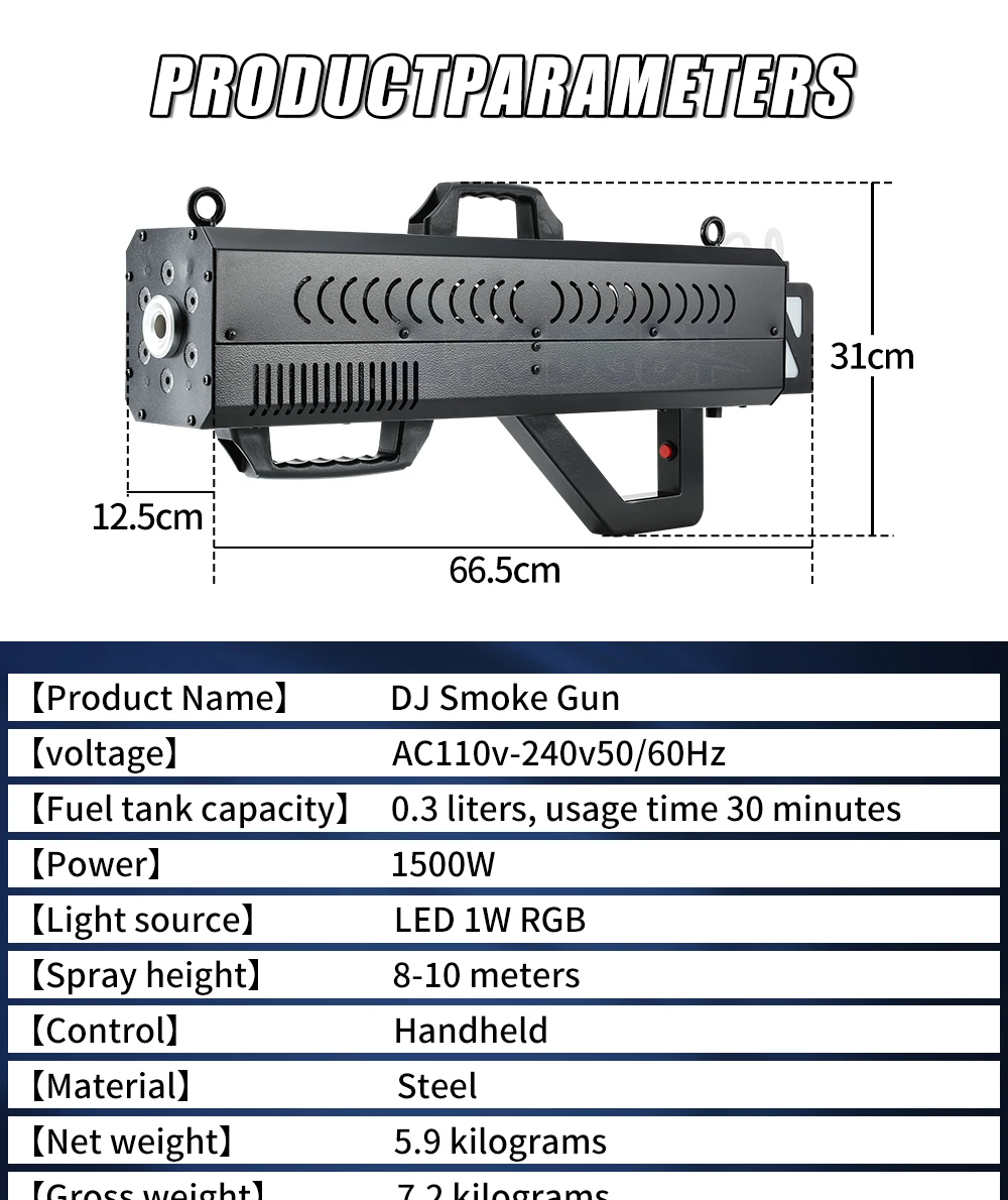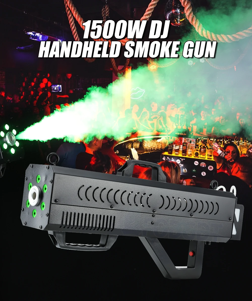 Create dramatic festival and rave effects with this 1500W handheld smoke gun. Featuring LED RGBW lighting and powerful fog output, it’s perfect for DJs, PSYTRANCE events, disco parties, bars, and stage performances. Lightweight and easy to use, this smoke sprayer enhances lighting visuals, adds atmosphere to dancefloors, and synchronizes with music for immersive party experiences. Ideal for indoor and outdoor events, it brings professional-grade stage effects to any festival or club setup.
