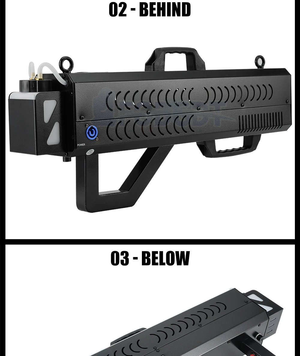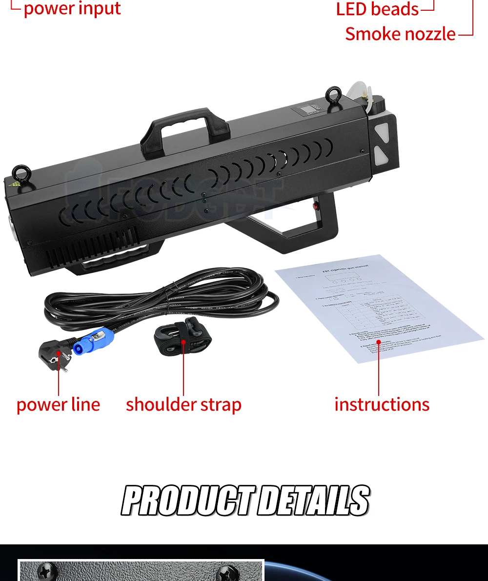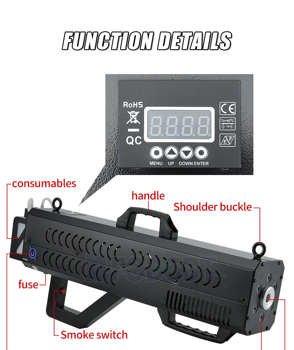 Create dramatic festival and rave effects with this 1500W handheld smoke gun. Featuring LED RGBW lighting and powerful fog output, it’s perfect for DJs, PSYTRANCE events, disco parties, bars, and stage performances. Lightweight and easy to use, this smoke sprayer enhances lighting visuals, adds atmosphere to dancefloors, and synchronizes with music for immersive party experiences. Ideal for indoor and outdoor events, it brings professional-grade stage effects to any festival or club setup.